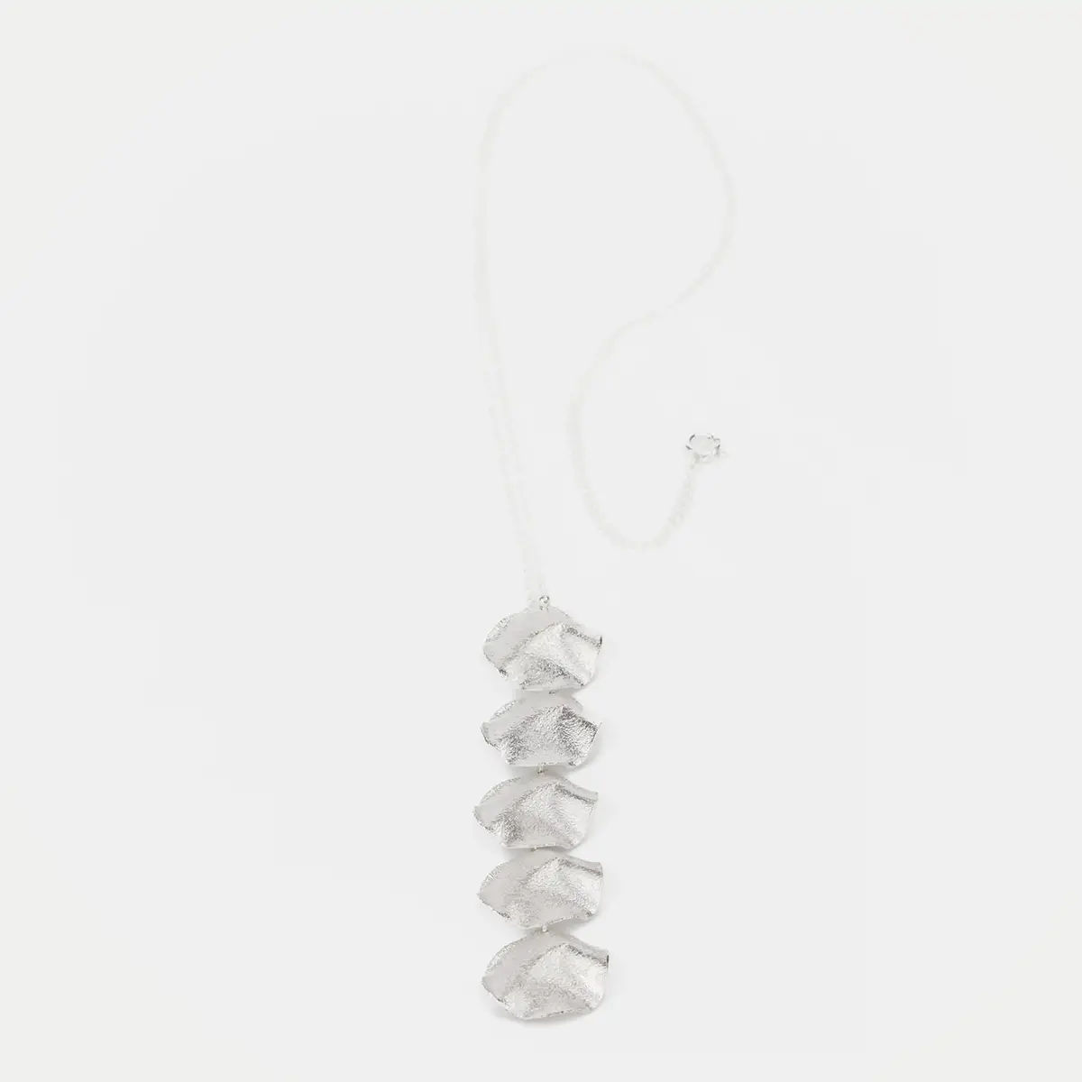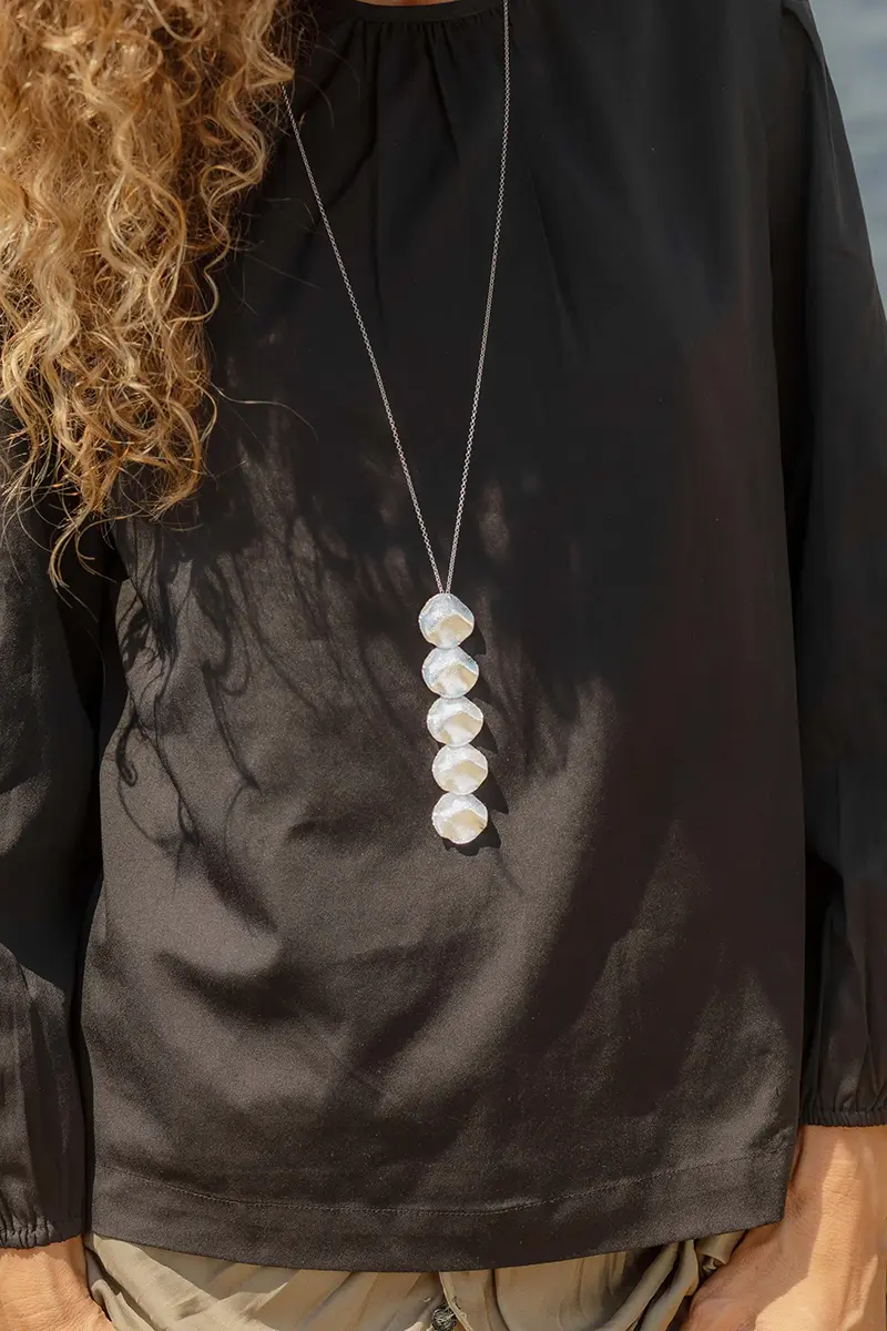 Cada módulo da gargantilla lembra unha pequena onda, suave e luminosa, que te envolve cun abrazo lixeiro.